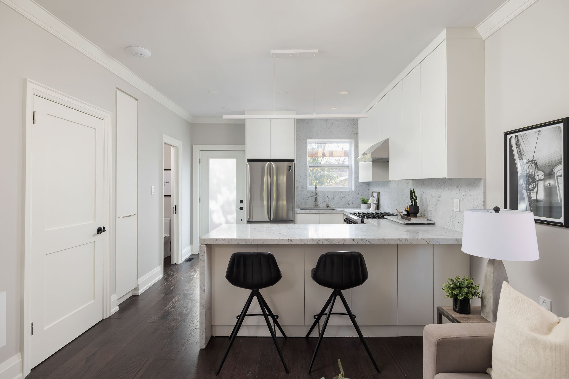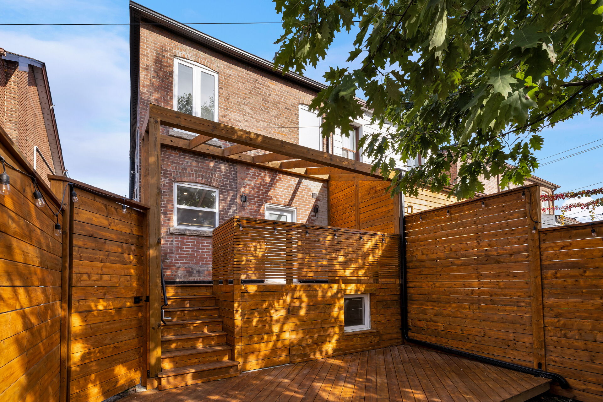 Heritage Charm Meets Modern Confidence | Designer-Renovated Corso Italia Semi. Every so often, a home resolves Toronto’s dilemma: character or reliability. For buyers seeking the soul of old Toronto with the confidence of a modern rebuild, 69 Peterborough Ave is reimagined for contemporary living. Step inside a light-filled, open-concept main floor where exposed brick & wide-plank engineered hardwood meet thoughtful flow. Custom Carrara marble kitchen features continuous slabs across the counters, waterfall island & backsplash that culminate in a full-height marble surround window frame. A walkout leads to the upper tier of a custom deck with pergola and privacy fencing (2024), extending the living space outdoors. Upstairs, a large primary suite showcases a statement brick wall & custom closet storage, while two additional bedrooms include built-in storage. A floor-to-ceiling linen closet adds thoughtful functionality to the upper level. Spa-inspired bath with custom Nero-Assoluto built-in window frame evokes boutique-hotel serenity and craftsmanship. Behind the beauty lies a system-level renovation: plumbing + electrical rework (2021), spray-foam RockWool insulation (2021), HVAC and HRV integration (2021), roof replacement (2023), updated furnace & hot water tank (2024), engineered for efficiency, longevity, peace of mind. Outside, the two-tier deck extends to a lower level with storage, while privacy fencing continues throughout the yard, creating a rare private retreat. The clean, generous basement includes under-stair storage, a workbench & an extra fridge, ready for your vision. Steps to The Sovereign Cafe, Tre Mari Bakery, & Geary Avenue’s Famiglia Baldassarre, North of Brooklyn Pizza, & more. Old Toronto soul, rebuilt for modern life. Come see what makes this turn-key semi different, where the hard work is done, & your energy can go toward making it your own. Seller parks on street with permit. Peterborough Ave designated for residential street parking.